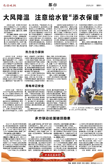 2月6日,市气象台发布大风黄色预警信号,预警区域:全市。预计12小时预警区域可能受大风影响,平均风力可达8级。当日下午2时45分,一位市民致电“12345”热线称,迎泽区桃园南路59号往北100米路西万民药房楼顶,有遮挡板即将掉落存在安全隐患,希望相关部门核实情况尽快处置。