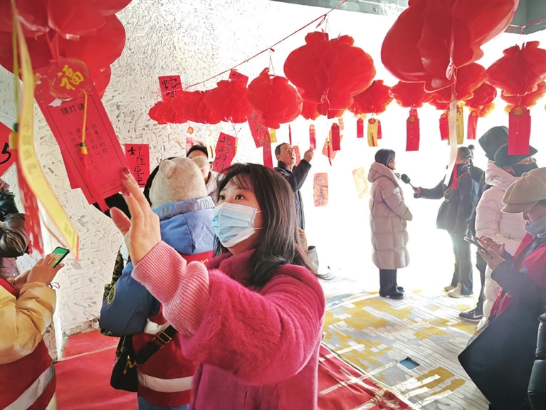 上午9时,活动准时拉开序幕。现场,琳琅满目的灯谜吸引着众人的目光。瞧,这边居民独自停留在灯谜前,眉头紧蹙,探寻着正确答案;那边则是三五成群的居民,你一言我一语,热烈地讨论着,毫无保留地谈着自己的见解,时不时传来解开谜题后发出的欢呼声。