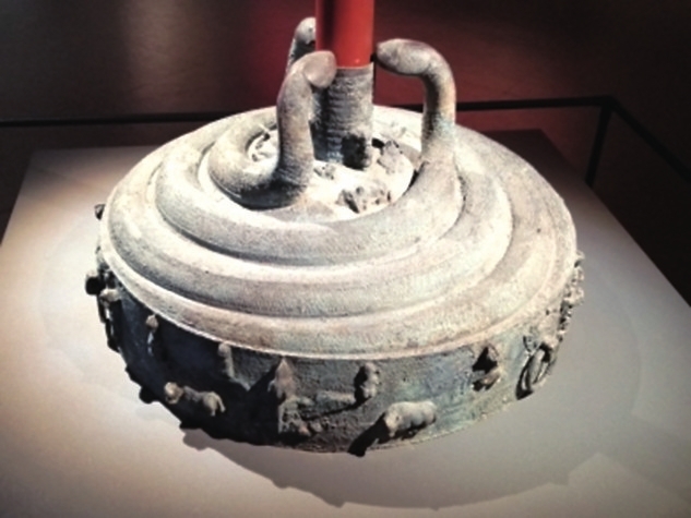 其中“礼乐春秋”展览单元展出的盘蛇形鼓座是珍贵的战国晚期的礼乐青铜重器,也是山西出土的重要文物。