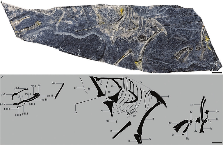 “政和八闽鸟是目前唯一确定的侏罗纪鸟类。”王敏介绍,系统发育分析表明,政和八闽鸟是仅次于始祖鸟而最早分化的鸟类支系,表明政和八闽鸟是目前已知最古老的鸟类之一,将现代鸟类起源的时间推进到距今1.72亿年至1.64亿年。