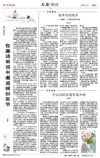 全书还以宋朝词人秦观的《鹊桥仙·纤云弄巧》以及唐朝诗人李商隐的《中元作》为例,倾诉了唐宋先民过七夕节和中元节时的文学情怀,让这八个从春节到重阳的传统节日,在时序的沧桑流转中,既活在绮丽的唐诗宋词里,更活在中华民族共同的文化传承中,代代沿袭,生生不息。