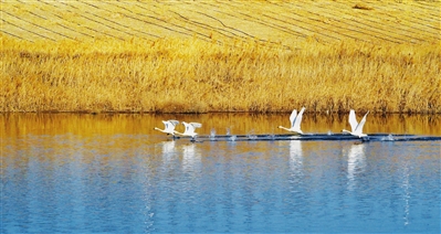 2月16日,清澈的汾河清徐段水面上,几只洁白的天鹅在游弋。近年来随着生态环境的改善,越来越多的水禽来此栖息。 李学军 摄