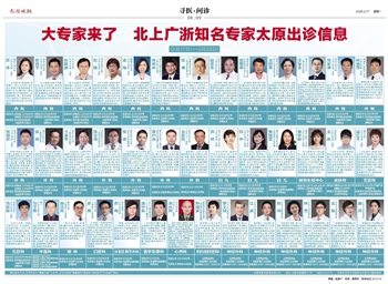 出诊时间:汾东院区:2月18日上午 府城院区:2月20日上午