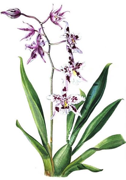 文心兰是多年生草本植物,叶片宽大且肥厚,常年散发着浓郁的绿意,形状为椭圆状披针形,在光影交错间,展现出一种独特的美感。它有形态各异的假鳞茎,包括卵形、纺锤形、圆形或扁圆形,是储存及供给养分的关键器官。它的根系洁白如玉,仿若丝缕般轻柔地悬挂在兰花之下,使得整个植株显得轻巧灵动。纤细的花茎如同轻盈的丝带,在微风中轻轻摇曳,尽显优雅之态。