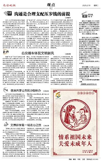 随着年龄增长,孩子有了权利意识,对金钱有了现实需求,难免与父母在压岁钱方面有所冲突。首先,这是孩子长大的标志之一,维护自身权利无可厚非,家长需要尊重、解释和引导,而不是粗暴对待,一味指责孩子不懂事;其次,全给或全不给,都不是适宜的选择。一方面,法律确实规定了压岁钱的所有者是孩子本身,如果只是被当作工具人,到头来仅是纸面富贵、一分不剩,既不符合传统民俗,也会让孩子伤心失望。当然,成千上万元都交予孩子支配,难免花得不值甚至造成浪费,或使其养成大手大脚的毛病,经济状况不佳的家庭也难以承受。所以要与孩子耐心沟通,所有权不等于支配权,因为你是未成年人,监护人替你管理使用并不违法;讲现实——哪些钱本质上并不全是压岁钱,何为成年人的人情世故;教理财——财富要有规划,消费应该适度,控制欲望是人生的必修课……