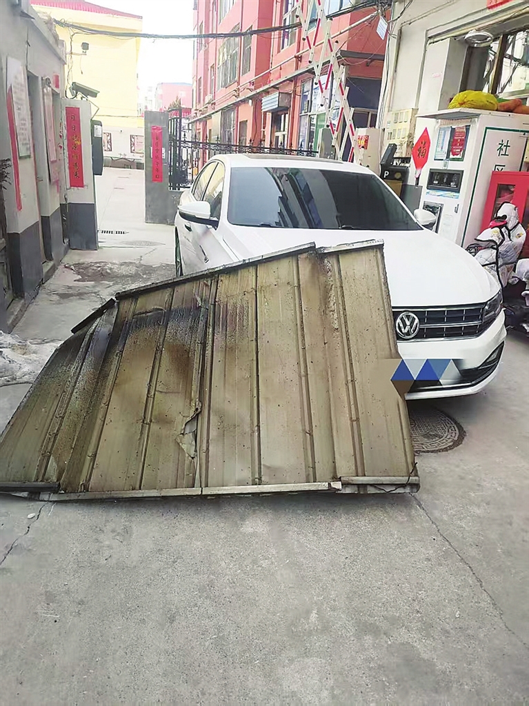 当天中午,该小区居民白女士向社区反映,刚才风力巨大,小区底商一家饭店用来包裹烟囱的一块大铁皮从高空掉了下来,不但把她的大众轿车前机盖、保险杠砸坏,还把邻居陈女士的特斯拉轿车前大灯砸坏。两人就此事和饭店老板交涉,但对方不愿进行赔偿,因此求助社区帮忙协调。