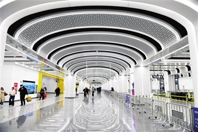 太原轨道交通1号线定于2025年2月22日10时30分正式开通初期运营。图为2月18日,地铁1号线太原南站通道。牛利敏 摄