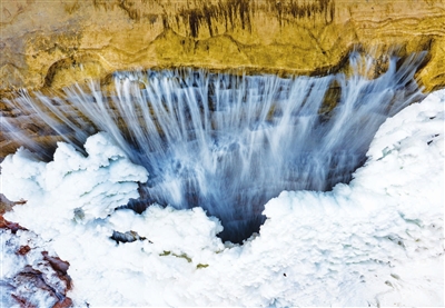18日,随着气温回暖,宁夏固原市彭阳县境内茹河瀑布的冰瀑逐渐融化,冰皮始解、飞珠溅玉,好似一幅美丽画卷。