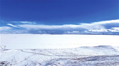 这是2月22日拍摄的雪后的鄂陵湖一角(无人机照片)。