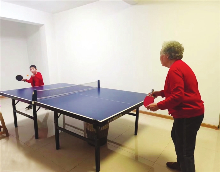 我这个从未学习过乒乓球,仅单纯喜爱乒乓球运动的奶奶辈之人,与专门学习过的小选手对打,全然无法抗衡。孩子右手横握拍,我仍是从前的直握拍。他的每一招每一式,每一削每一扣,令我甚是过瘾。赢了我,他会高兴地蹦起来;偶尔没有接到我的球,他也会懊丧地两手一摊,那个样子有趣极了!经过几十个回合,我已经全身发热了。而后,我又知晓,小布丁去年还参加了长治市第五届少儿杯交流赛,所在的团体荣获第三名。哦,这次向小选手的学习,值了!临走时,正在手机围棋盘上和爷爷对弈的孩子,用清脆的声音说了一声:“奶奶,拜拜!”他的爷爷说道:“陈姨,往后有空多来玩啊!”