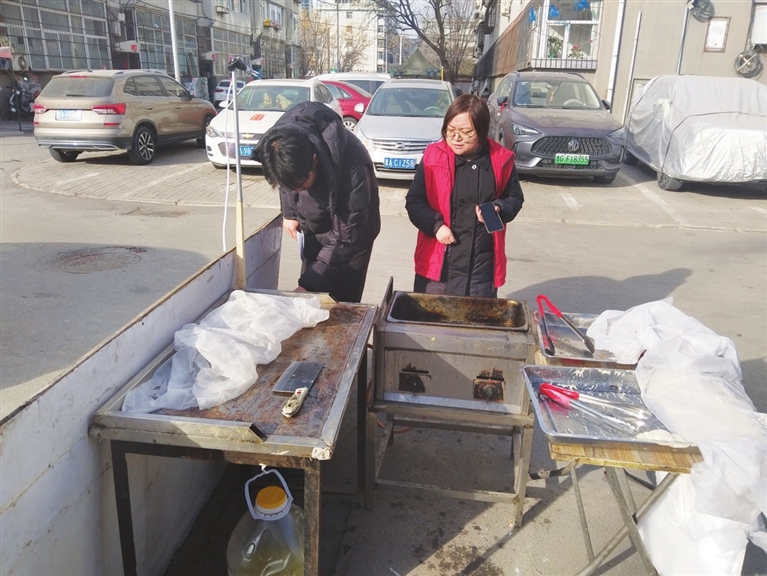 2月24日早晨,机床东社区网格员王静在巡查中发现,位于敦化巷3号敦化北小区南门处,一住户竟然从家中扯出数十米电线,炸油条煮馄饨,在小区门口摆起摊点卖早点。王静当即予以制止,告知住户私拉电线存在极大安全隐患,可能引发触电事故、火灾等,威胁自身和他人生命财产安全。同时,经营早点摊需要办理各种证件手续,无证经营是不允许的,同时也会给邻居带来不便和困扰,影响邻里关系,不利于社区和谐,应当立即停止这种行为。