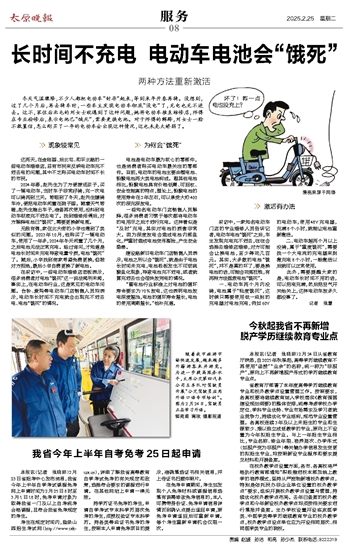 2024年春,赵先生为了方便接送孩子,买了一辆电动车,当时车子非常好骑,充一次电可以骑两到三天。转眼到了冬天,赵先生嫌骑车冷,便把电动车闲置在院子里。随着天气转暖,赵先生推出车子,准备再次使用,没料到电动车彻底充不进去电了。找到维修师傅后,对方解释电池已“饿死”,需要更换新电瓶。