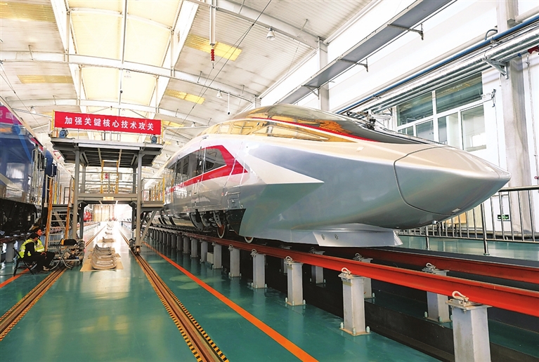 近日,运营时速400公里的高铁列车CR450动车组样车在北京发布。目前相关团队正在开展一系列科学试验和性能验证,为动车投入商业运营创造条件。