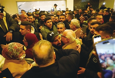 2月27日,巴勒斯坦获释人员回到加沙地带南部汗尤尼斯,与亲人团聚。