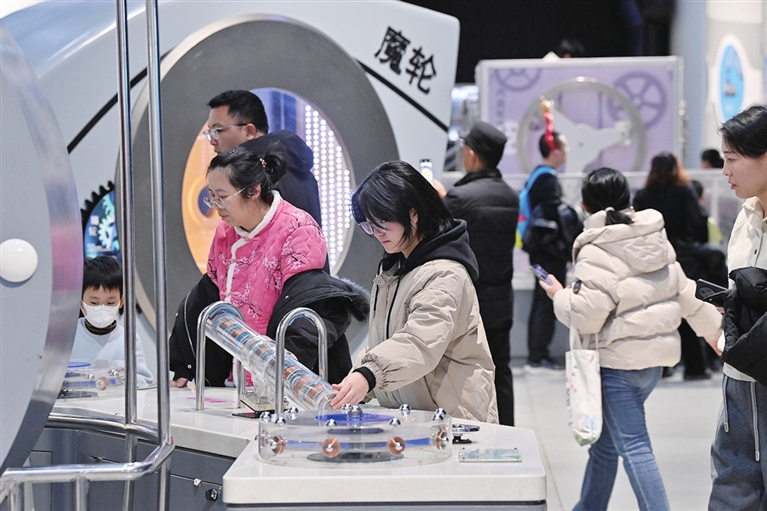 3月2日,省科技馆内人头攒动,互动体验区里,人们踊跃参与,感受科技魅力。王韵菲 摄