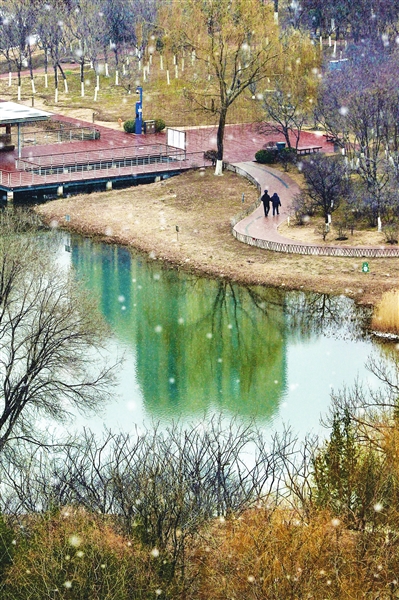 3月3日,我市迎来降雪,在和平公园,市民雪中散步。 王韵菲 张澍宏 摄影报道