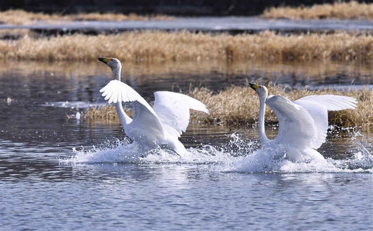 随着气温逐渐回升,大批天鹅、苍鹭等候鸟飞临北京密云水库,在这里栖息觅食、繁育后代。