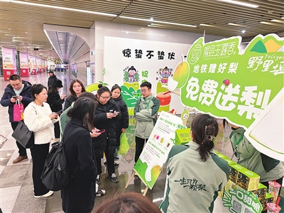 3月5日,是二十四节气的第三个节气——惊蛰。太原地铁联合隰县玉露香梨某水果专卖店在长风街地铁站开展赠梨活动,为乘客们送上春天的温情。 王韵菲 摄