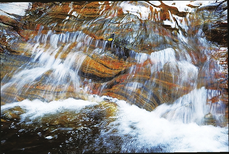 带同学们到农村山野拍摄实践,在很短的时间内,明显可见的目标很快被拍完了。于是,一些同学便无所事事。而我却发现了两组看似无趣但却有内涵的素材。一组是流动在山涧的小溪,于是联想到了一种精神:一往无前。越过山涧的小溪,一路曲折,不惧艰险流向远方。用较慢的拍摄速度拍出流水梦幻般的意境。难道这不就是一种创作的态度吗?另一个主题:岩画。散落在山间的乱石上,显现出不同色彩的岩画和图案,一组特殊的“密码”便随即问世,这样的例子很多。