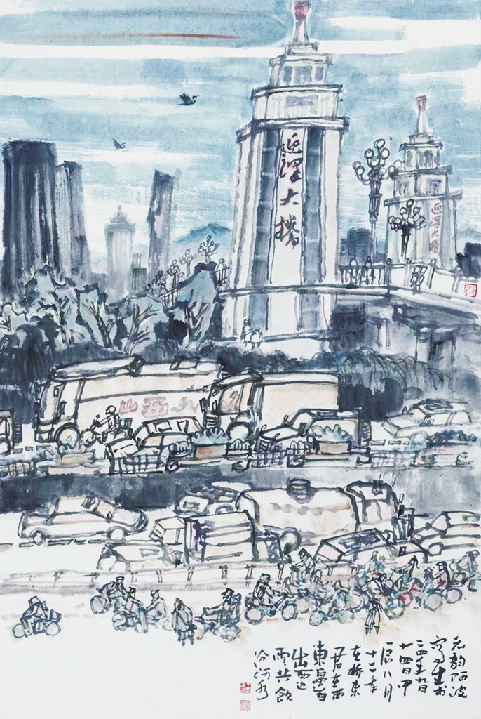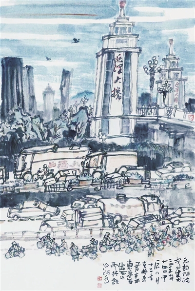 迎泽大桥(写生画) 王春波 绘