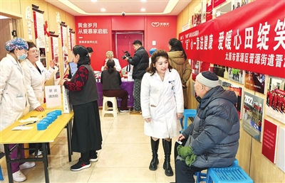 “来,大爷,把嘴张得再大一点儿。”晋源社区党群服务中心里,一场义诊活动正在进行,大厅中,齿科保健与清洁服务、血糖血压监测等多个检查项目前人头攒动。医生们耐心地为每一位居民进行检查,发现问题,及时提出合理化治疗建议。同时,向居民们传播健康的生活方式与理念。