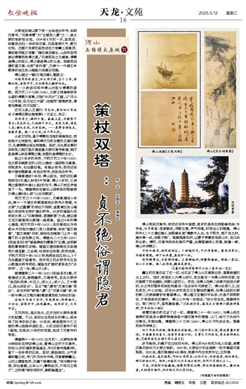 行旅远来,遥见塔影,即知太原将至;公私外出,回首塔身,渐远渐没,难尽依依之怀。惟此,双塔不仅为古城之标帜,殆同于多情之主人。