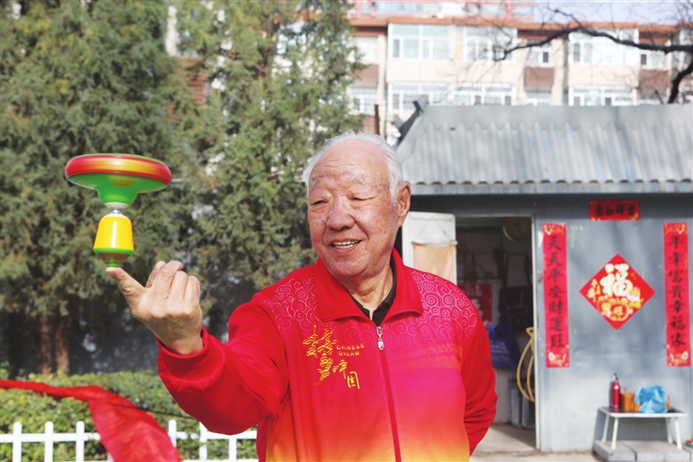 凭借着不懈的努力和钻研,梁光鼎不仅掌握了上百种抖空竹动作,还自创“8米顶杆”“姜太公钓鱼”“顶空竹书法”“小雷达”等绝技。他对空竹进行改造,改造后的空竹转得快、声音小、持续时间长,不少抖空竹爱好者慕名而来,向他求教改造方法。