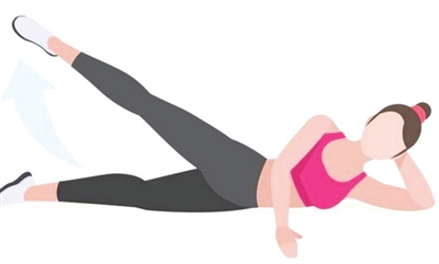 侧卧抬腿:侧卧,腿伸直抬高约30厘米,保持5秒后放下,每侧15次,强化臀中肌和股四头肌。