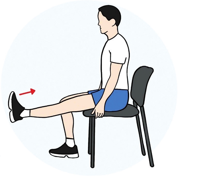 坐姿抬腿:坐直,双腿交替伸直抬高至与地面平行,每组10次,增强膝关节稳定性。