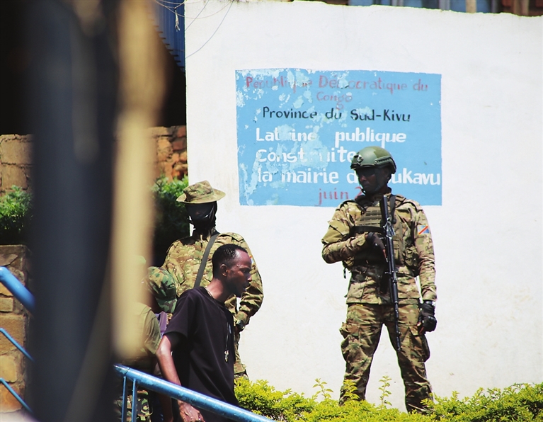 这张2月27日拍摄的资料照片显示的是,反政府武装“M23运动”武装人员在刚果(金)东部南基伍省布卡武市巡逻。