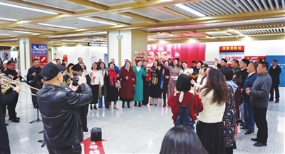 演出曲目经过精心编排,在展现山西本土文化特色的同时,巧妙融入春晚歌曲《世界赠予我的》,还有紧扣时代脉搏、凝聚奋进力量的《领航》《再一次出发》等曲目,通过合唱、器乐等形式,与现场乘客频频互动,让地铁站成了沉浸式“音乐厅”。