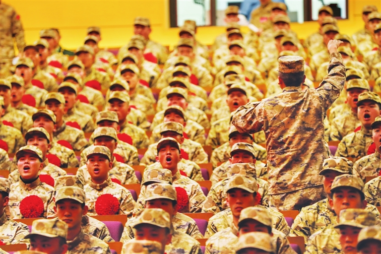 对青年学生而言,军营不仅是一所培养品格、磨炼意志的大学校,更是一个展现才华、实现抱负的大舞台。坐在康犇身旁的是20岁的申祥,他们都有坚定的参军入伍、报效祖国的信念,一起经历了役前训练,心理上准备好了接受军营生活的磨砺。“我爸爸是一名退伍军人,他之前是一名边防战士,我也想像爸爸一样,在军营里提高本领、成长成才、有所作为。”申祥说。