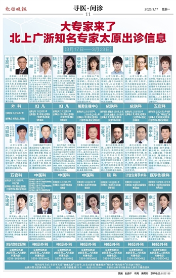 出诊时间:汾东院区:3月19日、20日、21日上午,府城院区:3月18日上午