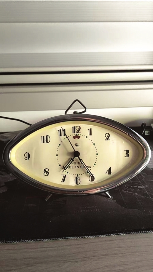 儿时,我家居住在太原肥皂厂宿舍大院。上世纪70年代末的一天,太阳落山之际,父亲和往常一样骑自行车回到家中,车把上的黑色挎包好像与平时略有不同,有些鼓囊,估计是点心。父亲没有拿出来,我也没问,包里一般是父亲工作随身带着的物件,有块点心啥的也是给奶奶买的。胡思乱想的我蹲在地上往火炉里添加小煤块。晚饭后,父亲很神秘地把我和哥哥叫到一起,威严地说:“你俩上学不是迟到就是晚去,也没个准确时间。今天我特意去解放大楼买了一台闹钟,这下你哥儿俩可再不能上学迟到了。”说着父亲像变魔术似的从小桌底下拿出来一款闹钟。我和哥哥眼睛都不眨地盯着,一款淡黄色的圆圆闹钟摆在桌子上面,模样十分好看。父亲将闹钟轻轻地提起,扭动闹钟背后的发条,表针活动起来了,滴答滴答的声音十分清脆,寂静的屋内一下有了响动。父亲还教我和哥哥如何对闹钟、如何调整时间。