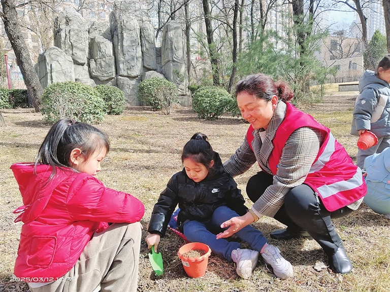 当天,小马公园内,小马社区工作人员和辖区幼儿园的老师们带领小朋友们认识槐树、松树等各类树木,详细讲解其种类、特征和生长习性。随后,孩子们还学习了向日葵种植技巧,并亲手制作盆栽,现场充满欢声笑语。同日,万科城社区的植树节活动也吸引了众多家庭参与。孩子们在志愿者带领下清理草坪,为小草发芽作准备。物业绿化负责人为孩子们讲解绿植特点与生长习性,打开他们对自然认知的新大门。亲子种植环节中,孩子们打开种植盲盒,在家长帮助下培土、撒种、浇水,每一个步骤都认真细致。家长们表示,活动不仅增进了亲子交流,也让孩子们在实践中增强了环保意识。