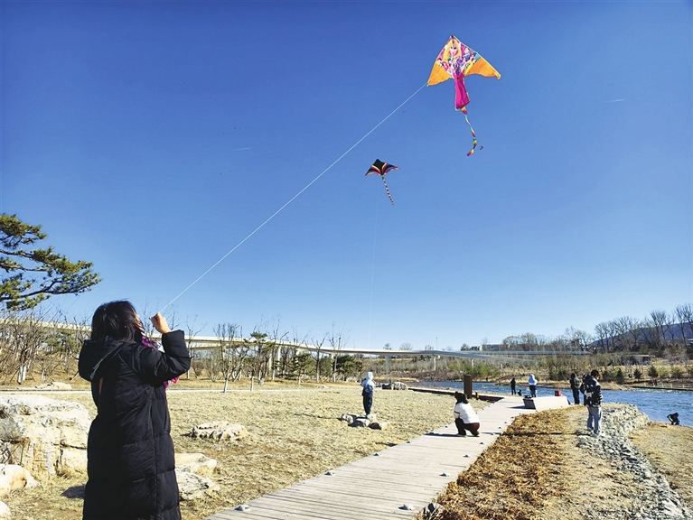 周末,有不少市民来汾河景区放风筝。他们或拽着风筝线奔跑,或手持线轴调整飞行中风筝的姿态。空中各种造型的风筝飞舞,一片热闹景象,令人更觉春意盎然。市民朱晓霞网购了一款风筝,带着孩子组装好,一起放飞。孩子尝试了几次,终于成功。风筝在绳子的一放一收之间,越飞越高。记者采访得知,每年风筝“放飞季”,汾河岸边就成了风筝爱好者的乐园,他们中有的是资深玩家,有的是初学者。各式各样的风筝,或高或低飞上天空,都承载着人们对生活的深切热爱。