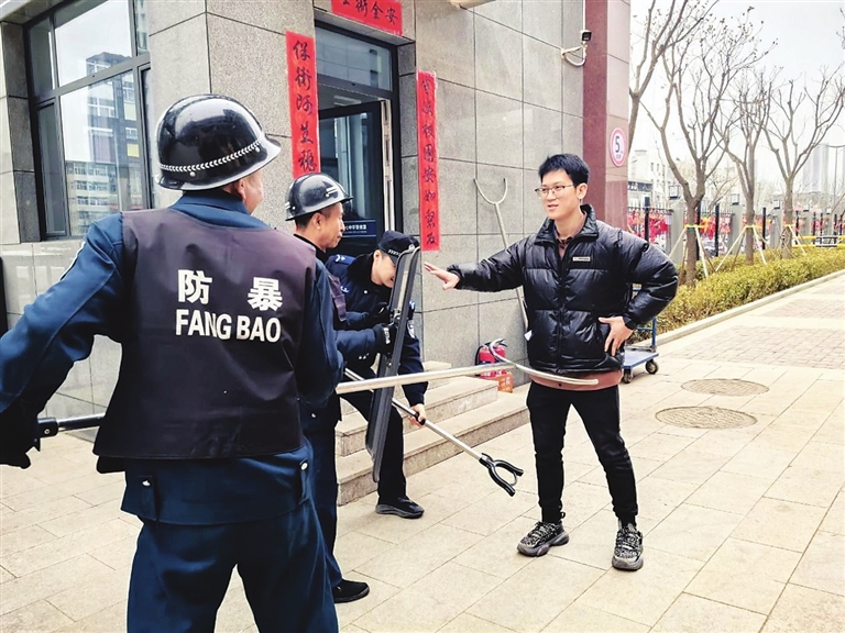 3月17日,老军营派出所民警组织辖区企业安保人员开展技能培训,讲解并演示防护器材的功能、性能特点及使用注意事项等,提升安保人员应对突发事件的应急处置能力。 辛欣 摄