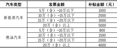 为了满足不同层次的消费需求,活动补贴设置两大类型:购买5万元(含)至20万元(含)的新能源汽车,消费者可获1000元至5000元不等的补贴;购买5万元(含)至20万元(含)的燃油汽车,消费者能拿到800元至4000元不等的补贴。