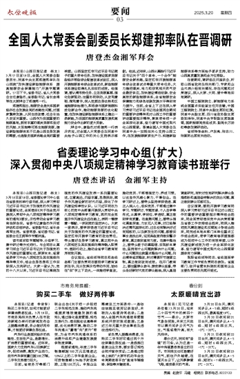 全国人大常委会副委员长郑建邦率队在晋调研