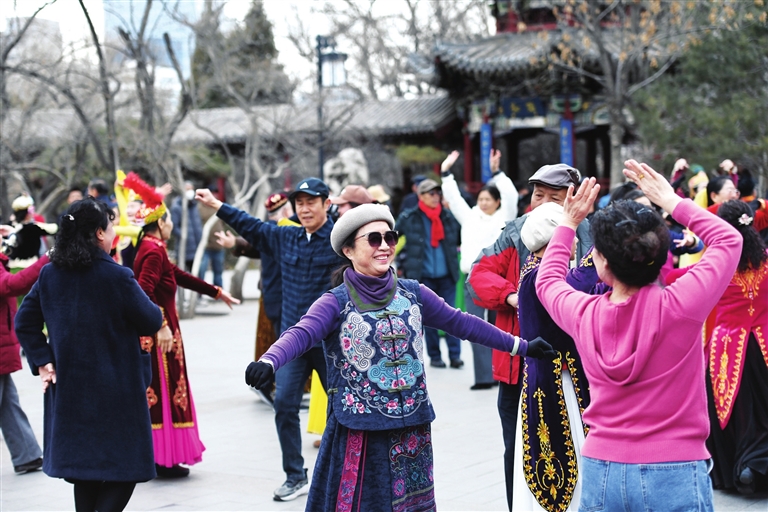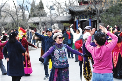 3月23日,春光明媚,迎泽公园内,舞友们翩翩起舞。 邓寅明 摄
