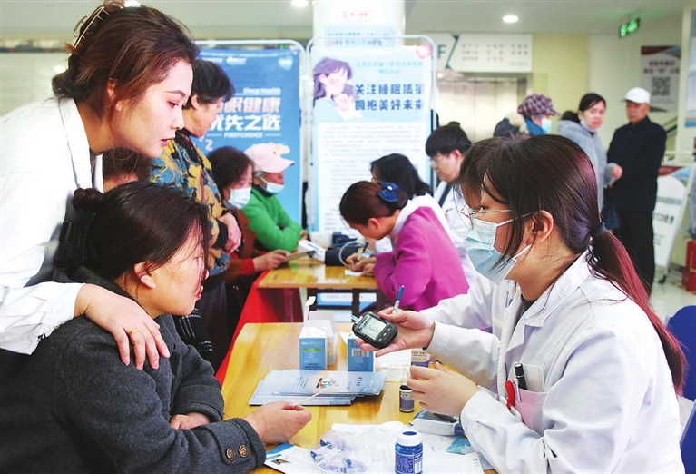 3月21日是第25个世界睡眠日,北京大学第一医院太原医院在门诊楼大厅进行义诊,提供便携式睡眠呼吸监测,喉内镜、鼻内镜检查,血糖检测,量表评估及用药咨询服务。 张澍宏 摄