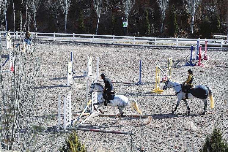 3月23日,东山某马术俱乐部,马术爱好者正在练习。随着天气转暖,越来越多的年轻人走向户外,在运动中释放激情。 牛利敏 摄