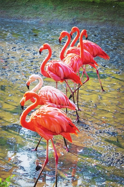 漫步园区,最热闹、最“聒噪”的要数各个鸟舍。鸟类的繁殖期即将到来,鸟儿们开始忙碌起来,筑巢觅食、摆“POSE”求偶,一派繁忙景象,色彩艳丽的火烈鸟、优雅高贵的东方白鹳、姿态蹁跹的黑鹳……它们都在为即将到来的繁殖季节做着充分的准备。还有褐马鸡、孔雀、鹦鹉等,时而展翅飞翔欢快地鸣叫,时而栖息枝头与游客互动。