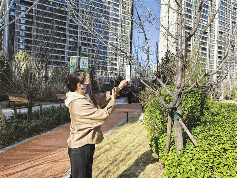小区原有不少树木,入春后又新栽植了一批。新城社区网格员孙洁在巡查中注意到一个现象,常有人站在树旁看半天,却叫不上名字。也有孩子好奇发问,家长却说错了树种,给孩子造成误导。网格员把这个情况反馈给物业,希望增加识别牌。物业马上根据栽种时登记的树木信息,找人设计,后逐一悬挂。“瞧,这是海棠树,性喜阳光,属于乔木,高可达8米,树体强健容易管理……”带4岁女儿在院里玩耍的陈女士,扫码后,把相关的树木信息念给孩子听。