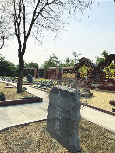 和传统墓区不同,杏花苑里没有一座立式墓碑。取而代之的是壁龛葬、景观葬、花坛葬、草坪葬等节地葬位,以及不留灰、不立碑、让土地循环使用的生态葬墓位。此处占地面积仅378平方米,共603个节地墓穴,其中包括255个生态墓穴,有的墓穴面积不足0.06平方米,这些墓穴不仅节约了用地,也非常环保。