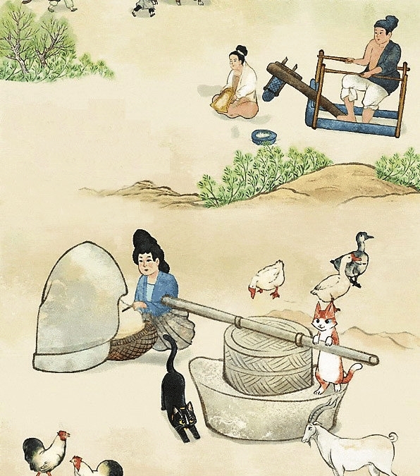 “灵眸”是山西汾阳东龙观5号墓东南壁画上的一只猫,它带领宋梦涵参与了庖厨的忙碌、家宴的盛况、农耕放牧的辛勤、社火杂剧的热闹、孝子故事的感人与温馨……