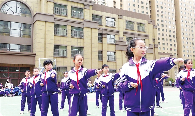 3月27日,晋源区第四实验小学举办“阳光杯”校园广播体操比赛,进一步落实我市《关于加强中小学综合体育活动的七项措施》,让同学们每天都有充足的体育运动时间。 郭苑甫 摄