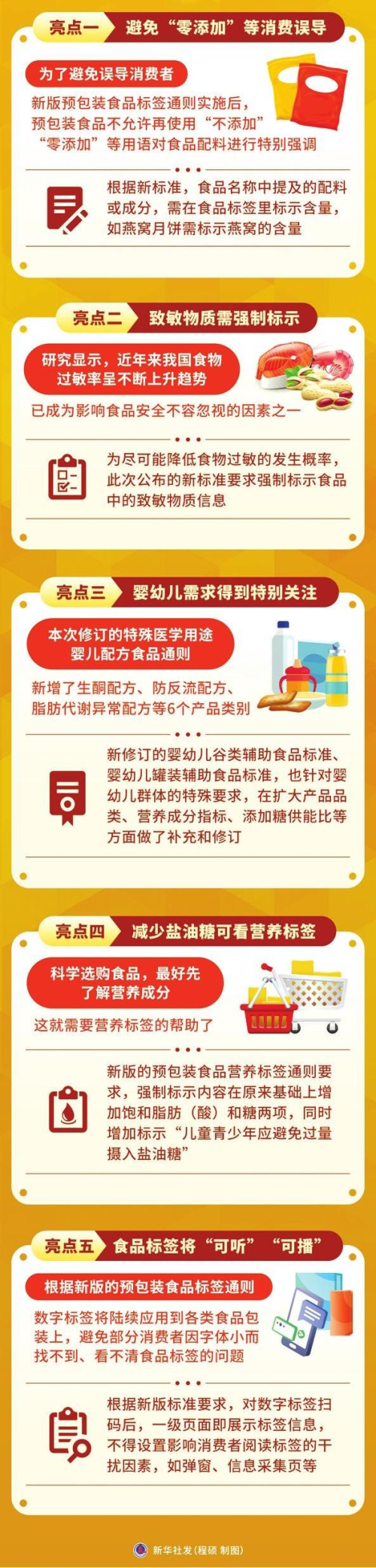 为尽可能降低食物过敏的发生概率,此次公布的新标准要求强制标示食品中的致敏物质信息。