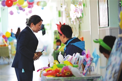 3月31日,小店区特殊教育中心学校举办“星光同行·益企成长”为主题的融合教育成果展。现场设立爱心市集,展示孩子们亲手制作的手工艺品。 王韵菲 摄