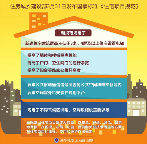 “新规范以整体思维提升住宅品质,以住宅项目整体为对象规定其规模、布局、功能、性能和关键技术措施等,有力支撑城镇住宅项目高质量发展。”住房城乡建设部相关司局负责人说,我国住宅建设进入品质提升新阶段,要不断完善标准规范,推动建设安全、舒适、绿色、智慧的“好房子”,满足人民群众对于改善居住条件的新期待。
